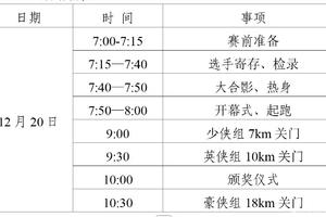 (三)7km 少侠 A 组(年龄:12-17 周岁)、7km 少侠 B 组(年龄:6-11 周岁)