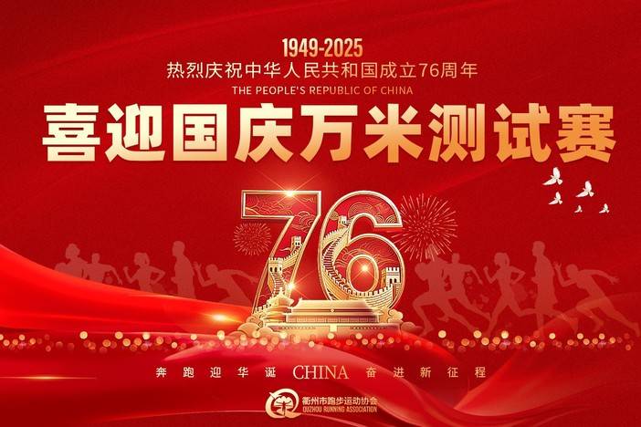 阅尽荣光,再迎华诞——抗战胜利80周年的余韵未消,建国76周年的喜庆已近。2025秋冬马拉松赛季即将到来,为更好检验自身长跑能力,备战衢州马拉松,检验夏训成果,提升衢州市跑步运动水平,为广大跑步爱好者提供一个检验训练成果、挑战自我、交流互动的平台,特举办本次万米测试赛。赛事基本信息赛事名称:《迎国庆万⽶测试赛》主办单位:衢州市跑步运动协会赛事时间:2025年 10 ⽉ 1 ⽇6:00-9:00(国庆节)赛事地点...